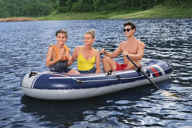 De boot is geschikt voor twee volwassenen met een kind met een maximale belasting van 225 kilogram. De Bestway Treck is uitgerust met twee quick-fill/fast-deflate ventielen voor het eenvoudig en snel opblazen/leeglaten. Verder heeft deze opblaasbare boot een opblaasbare bodem, die zorgt voor extra comfort. Ook handvatten, riemsloten en riemhouders zijn uiteraard voorzien.