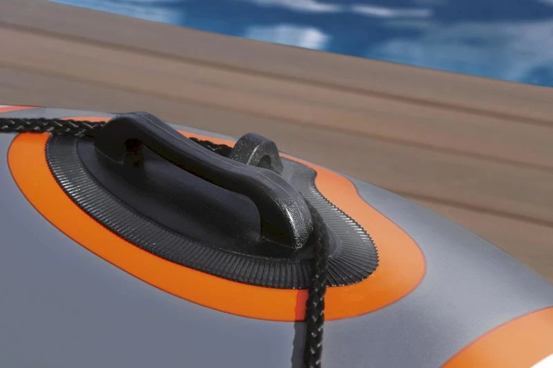 De Bestway Kondor is gemaakt van duurzaam PVC waardoor je stevig in het bootje zit. Daarnaast heeft de opblaasboot twee roeidollen waar de peddels doorheen kunnen. Hierdoor roei je comfortabel zonder de boot te beschadigen. Dankzij het handvat en het grijpkoord dat rondom de boot is bevestigd, klim je gemakkelijk terug op de boot of verplaats je hem.