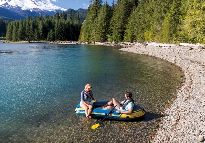De Intex Challenger 2 is de perfecte opblaasbare boot om te gebruiken in het zwembad of op rustige meertjes. De Intex Challenger 2 opblaasboot is uitermate geschikt voor kinderen. Door de opvallende gele accenten kun je ze op ieder moment in de gaten houden. Omdat de Intex Challenger 2 drie luchtkamers heeft, kun je altijd veilig aan de kant komen, ook wanneer er een luchtkamer lek raakt. Om de veiligheid altijd te kunnen garanderen, is het aanbevolen een reddingsvest of zwemvest te dragen tijdens het varen met de Intex Challenger 2.