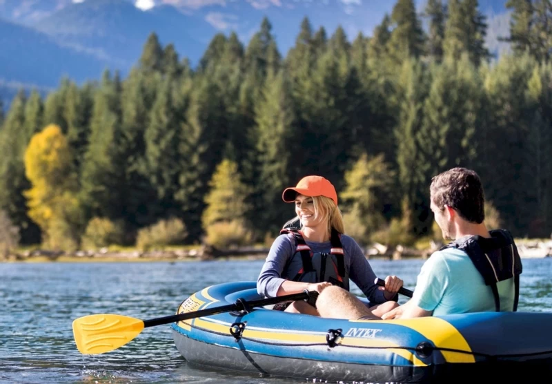 De Intex Challenger 2 is geschikt voor twee volwassenen met een maximale belasting van 170 kilogram. De Intex Challenger 2 is uitgerust met twee quick-fill/fast-deflate ventielen voor het eenvoudig en snel opblazen/leeglaten. Verder heeft de Intex Challenger 2 Set een I-balk bodem, die zorgt voor extra comfort en stabiliteit. Ook handvatten en riemsloten zijn uiteraard voorzien. De Intex Challenger 2 weegt 6,3 kilogram en is dus erg licht van gewicht.