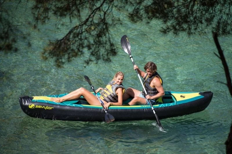 De Sevylor Ottawa is een degelijke opblaasbare kajak waarmee je met zijn tweeën of drieën lekker het water op gaat. Door de verplaatsbare zitjes deel je hem naar wens in en heb je bovendien de nodige ruimte voor bagage. De stevige kajak komt het beste tot zijn recht op een stromend riviertje, maar kun je ook perfect gebruiken op een rustig meer. Kom je in aanraking met een rots of tak, dan hoef je je geen zorgen te maken. Het materiaal is voorzien van een beschermende laag tegen lek raken.